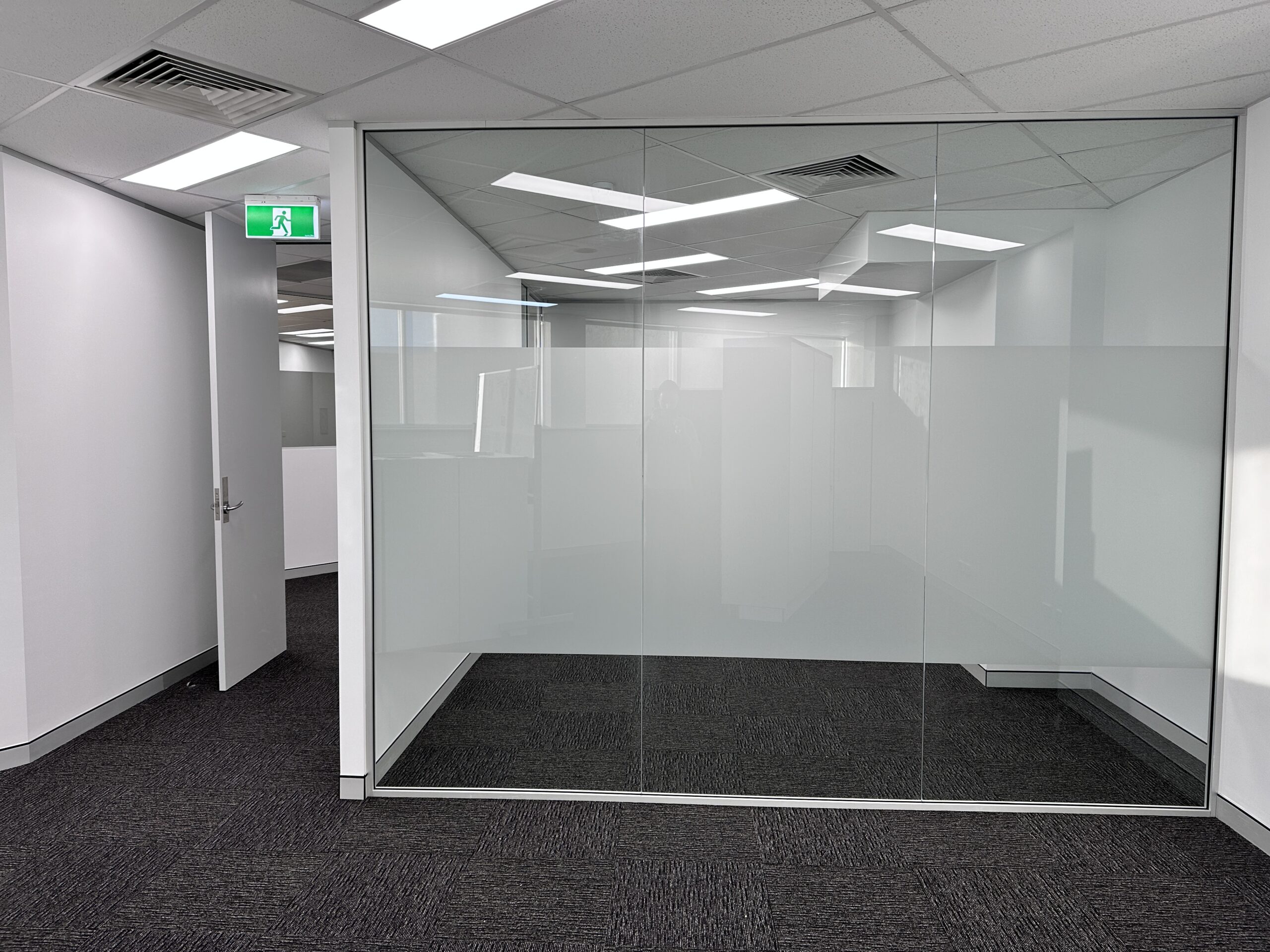 Sometimes your existing glass office partitions can be relocated on the same floor, to suit your new office layout. This allows you to reconfigure your space as required to create extra offices, meeting rooms, boardrooms and interview rooms. Glass office partitions can be reconfigured without requiring expensive structural changes. If additional safety glass and aluminium Is required, we can supply it, and match your existing colour scheme. Partition doors can often be reused in a different location provided they are a suitable width, to comply with BCA/NCC and Australian Standards requirements.