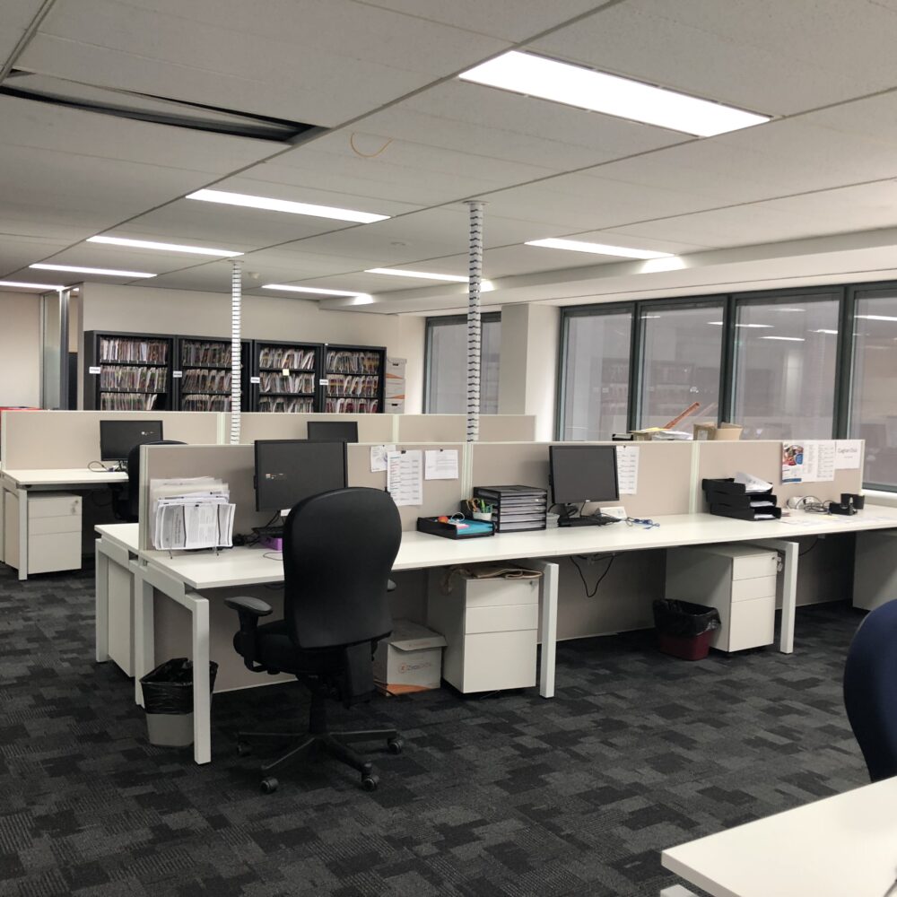 As the office remained operational throughout the works, careful staging and coordination were required to minimise disruption to staff. Site access and noisy works had to be scheduled outside of core business hours.