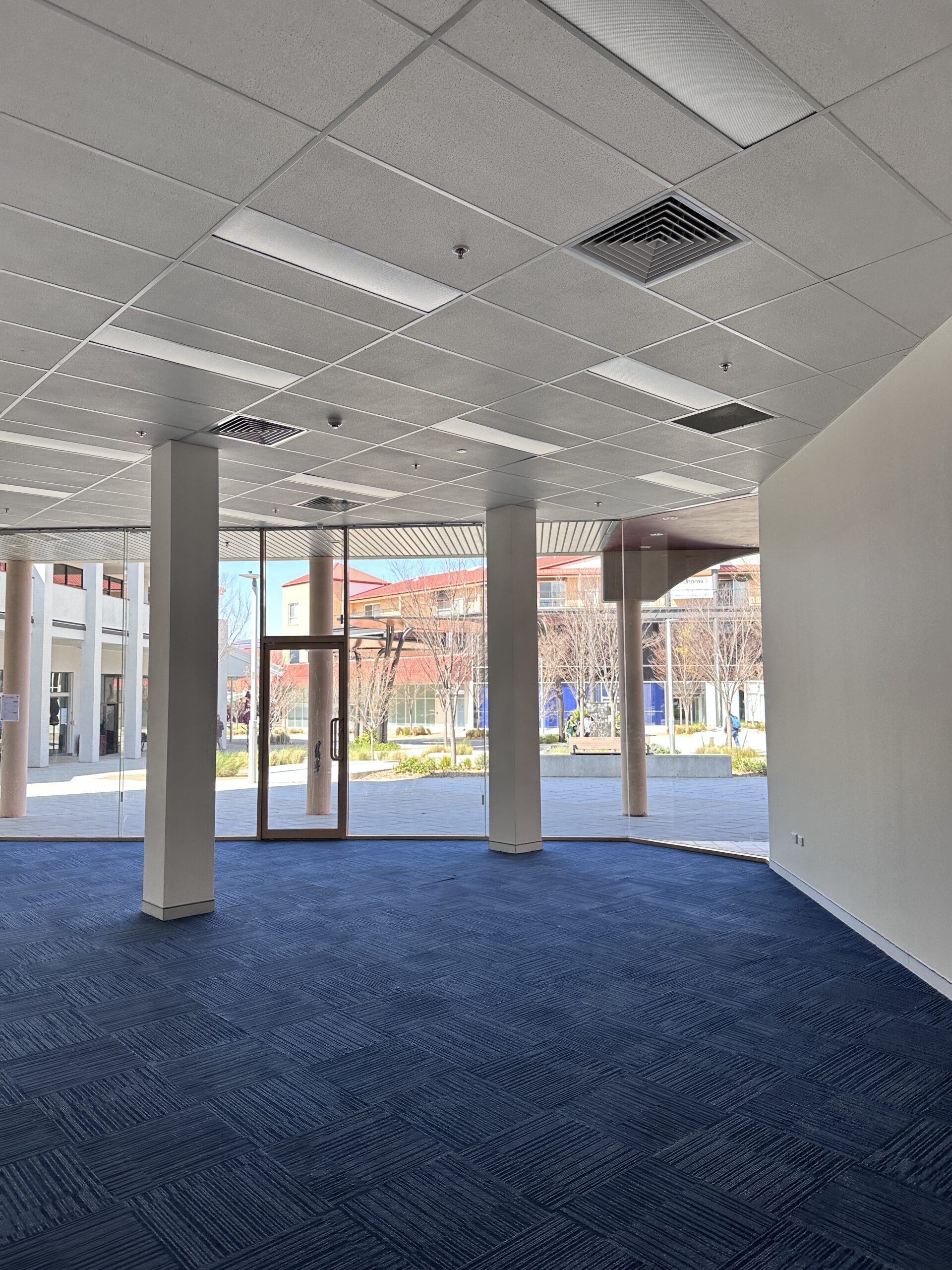 Interior office fitout completed for MTC Australia’s Tuggeranong premises, with acoustic partitions, LED upgrades, and fire compliance integration.